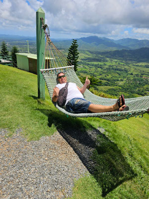 Natürlich gehört auch ein gemeinsames Mittagessen mit typisch dominikanischen Gerichten zu unserem Aufenthalt auf dem Schaukelberg. Mit diesem Ausblick schmeckt es gleich doppelt so gut.