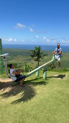 Hier oben verbringen wir etwa eine Stunde. Du kannst die berühmten Schaukeln ausprobieren oder Dich auf den Hexenbesen setzen – perfekte Fotomotive, die aussehen, als würdest Du über den Abgrund schweben. Wer es noch aufregender mag, hat die Möglichkeit, eine Zipline oder ein Drahtseil-Fahrrad auszuprobieren (gegen Aufpreis).